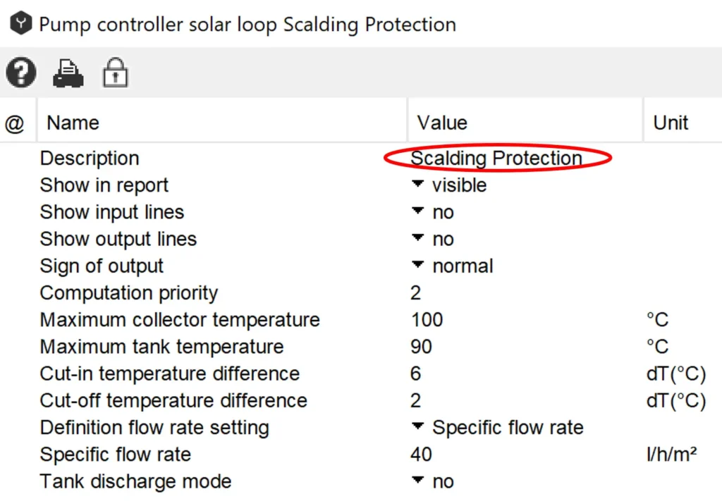 A number of controllers (e.g.: temperature, flow rate) allow to set fixed and variable temperature settings. Sometimes after running a simulation the energy demand will be shown as ”not covered“. This may happen if the temperature settings or flow rates defined within controllers and user profiles are not reached.