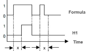 The time starts when the edge of the result of the formula is rising. If the result of the formula = “0” the time is set to “0“. Queries return “1“ only when the time has run out and the result of the formula is still pending.