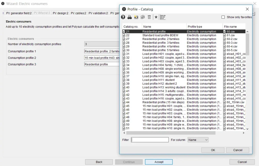 In the next step of the Wizard first the number of electricity consumption profiles shall be chosen as well as the consumption profile types from the catalog.