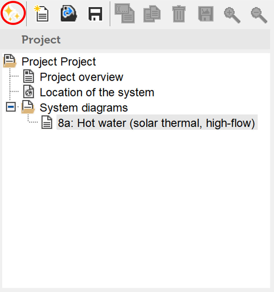 The Wizard opens automatically after starting Polysun or it can be chosen by clicking on the Wizard icon (first button on the left of the icon bar).