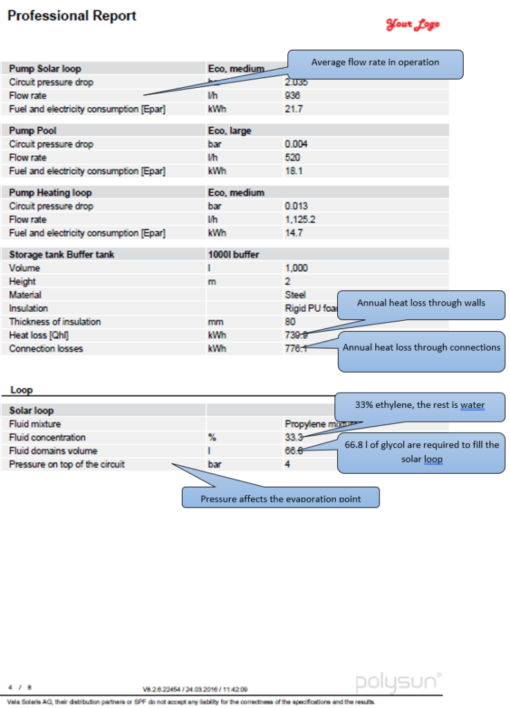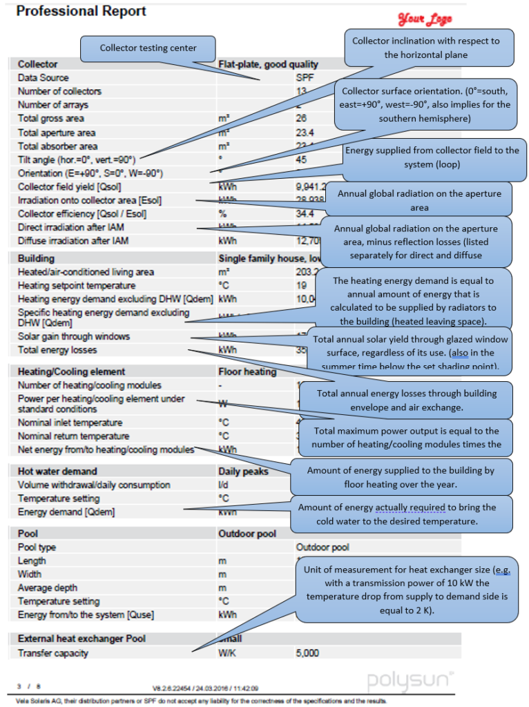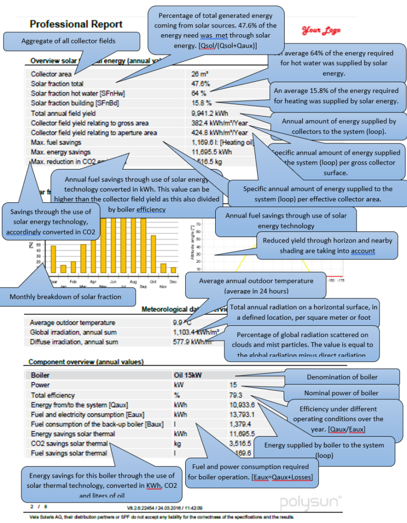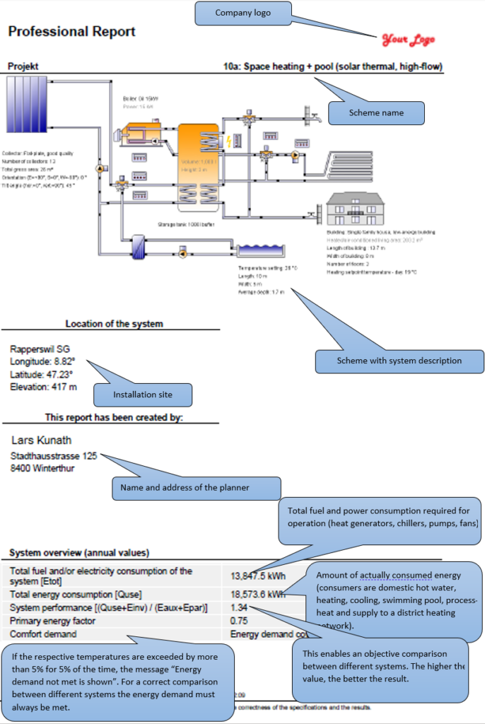 The different types of report – short report, professional report, comparative report and economic viability report – summarize all relevant results within a single document. The following example outlines the results shown in the report.