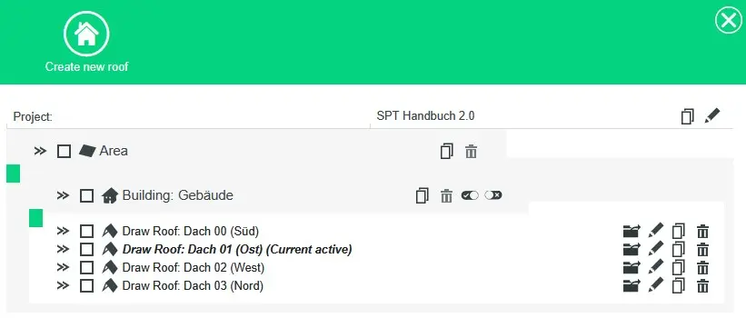 If you have several roofs, you can use the “Manage roofs” function to easily move from one roof to another, allowing you to select the other roofs.
