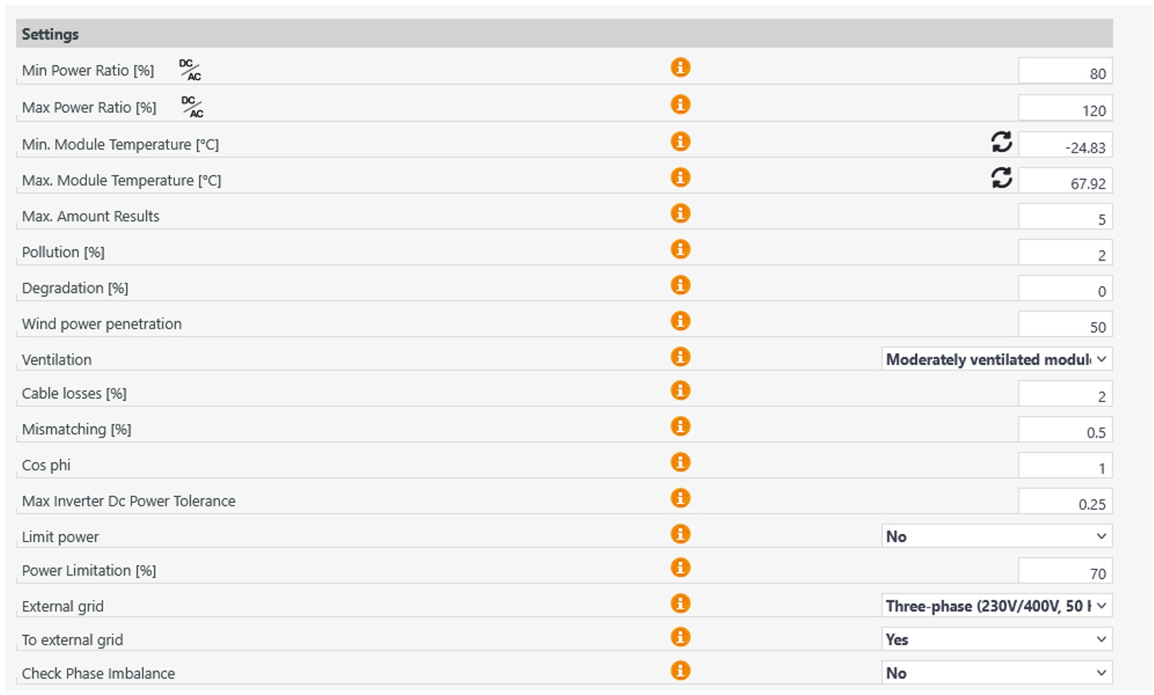 Here you can, for example, adjust the minimum or maximum power ratio or change the cable losses.
