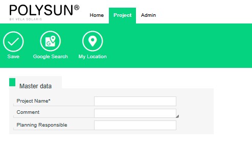 To start a new project in Polysun SPT, click on “Create new project” in the menu bar. You are now automatically in the project editor. Here you can enter the master data, project address and shipping address. We recommend that you select the project address using the “Google search”, as this automatically determines the height above sea level for calculating the snow load.