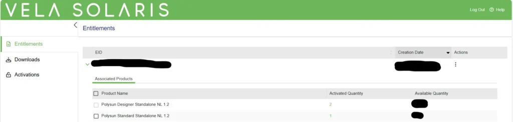 - Sie sehen in der Spalte „Activated Quantity“ die Anzahl Aktivierungen Ihrer Lizenz.