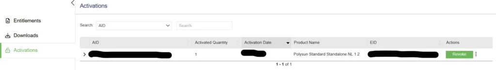 - Sie befinden sich nun auf der Aktivierungsseite. Klicken Sie nun auf „Revoke“ in der Spalte „Actions“ (grünes Feld). Sie werden nochmals gefragt, ob Sie die Lizenz wirklich freischalten möchten. Klicken Sie bitte nochmals auf „Revoke“. Wenn die Freischaltung erfolgreich ist, wird eine automatische E-Mail an die E-Mail Adresse geschickt, die im System hinterlegt ist.