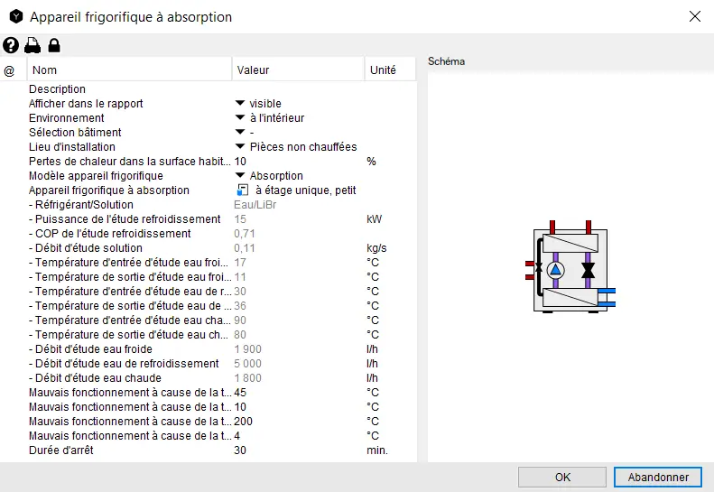 Tableau: Données de projet d’appareil frigorifique à absorption