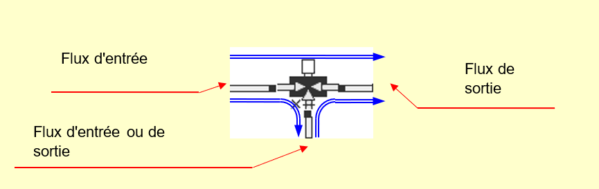 La vanne de commutation doit être raccordée dans chaque cas de manière à ce que les directions du courant correspondent à l’image.