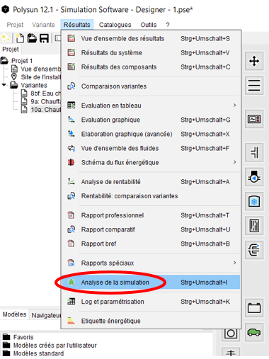 Vous pouvez démarrer l’analyse de la simulation via l’élément de menu « Résultats » ou en appuyant sur Ctrl+Shift+I.