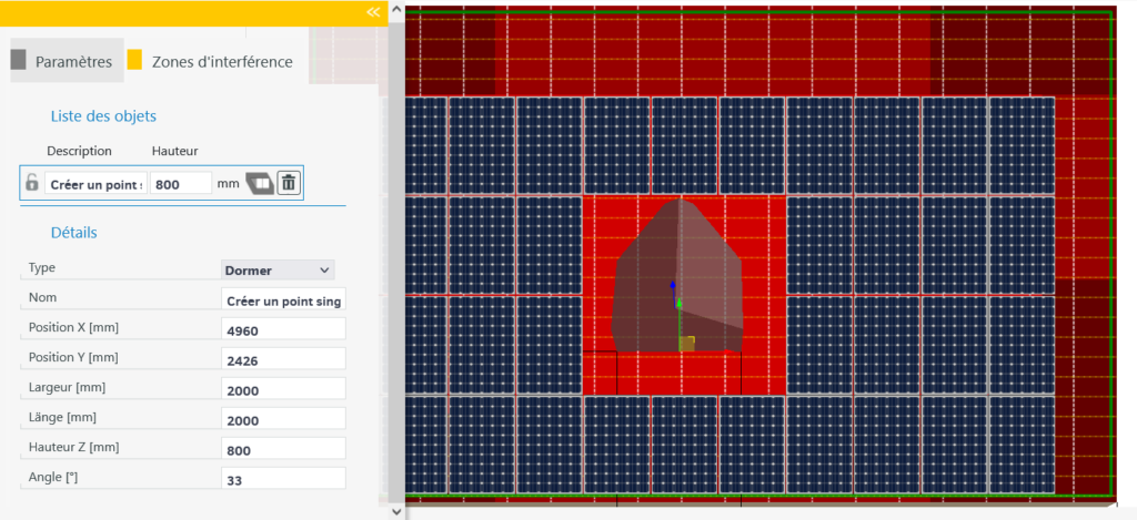 Dans le menu, réglez le type de la surface perturbée sur « lucarne ». Vous obtenez ainsi directement un aperçu de l’aspect de la lucarne.