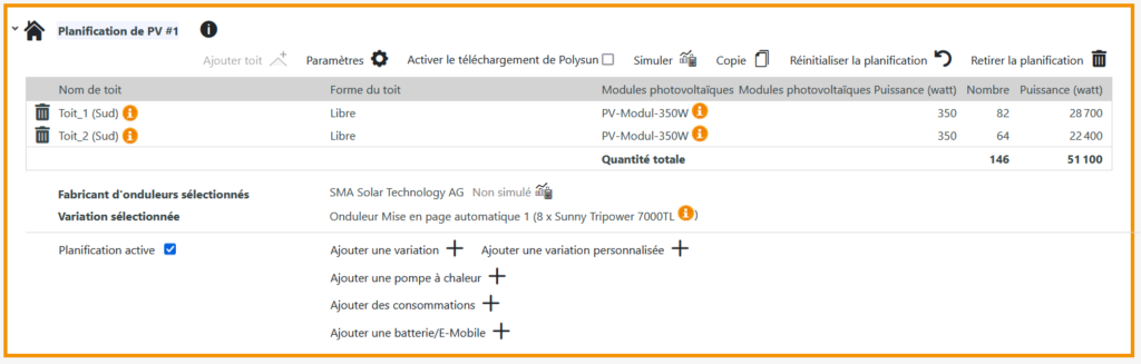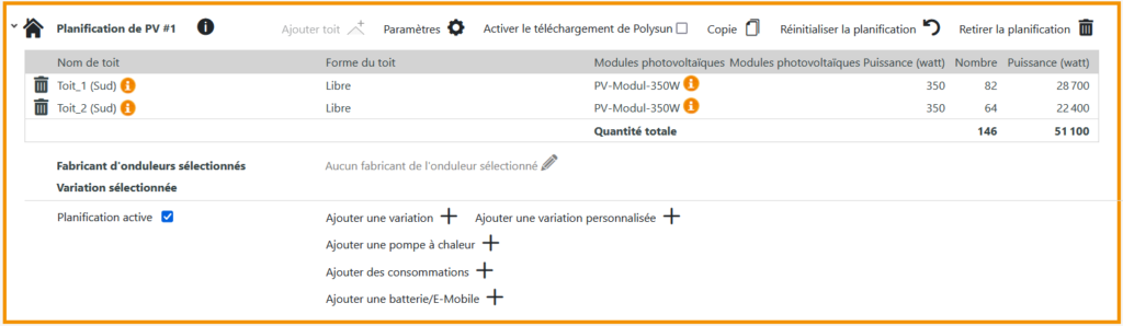 Dans l’étape suivante, vous devez ajouter une variante de conception d’onduleur à votre planification. Pour ce faire, cliquez sur « Ajouter une variation ».