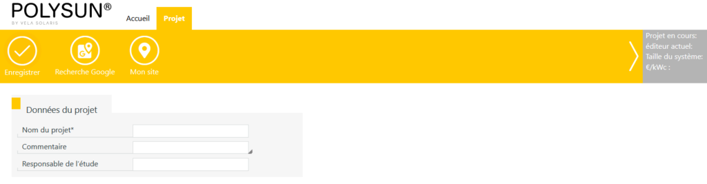 Vous vous trouvez maintenant automatiquement dans l’éditeur de projet. Vous pouvez y saisir les données du projet, l’adresse du projet et l’adresse de livraison. Si vous cliquez sur « Enregistrer », vous serez automatiquement redirigé vers l’éditeur de toit.