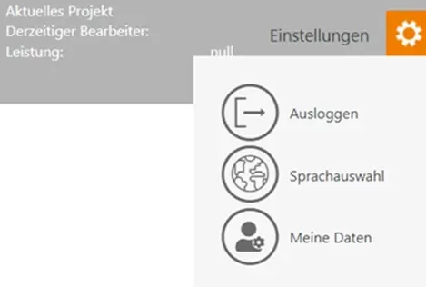 Wenn Sie die Sprache oder Ihre Stammdaten ändern möchten, klicken Sie auf das orange Einstellungsrad.