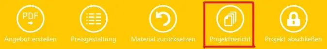 Sobald Sie Ihr Projekt vollständig konfiguriert haben, können Sie im Reiter „Ausgabe“ einen Bericht anfertigen. Klicken Sie dazu auf „Projektbericht“ und wählen Sie die für Sie relevanten Informationen aus. Klicken Sie dann auf Projektbericht und lassen Sie sich den Report als PDF ausgeben.